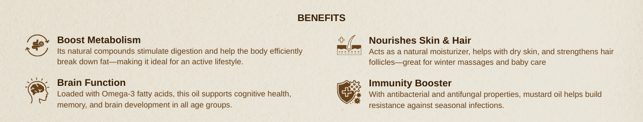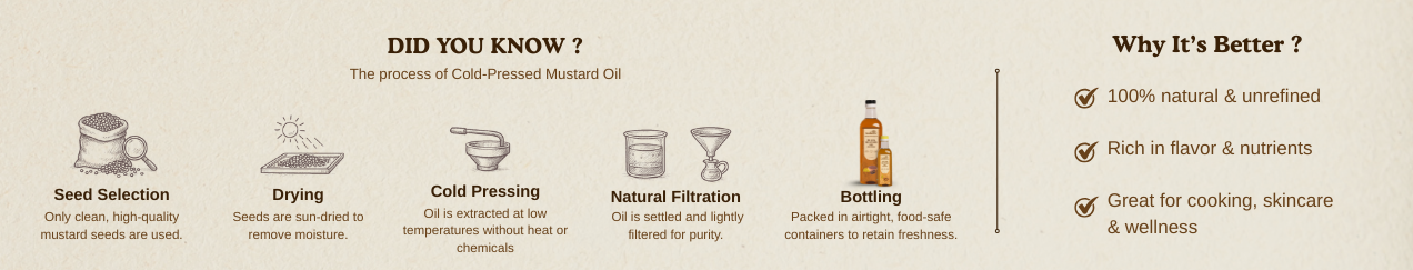 The pungent smell comes from allyl isothiocyanate, a natural compound in mustard seeds. This aroma is a sign of purity and indicates the presence of beneficial bioactive compounds.